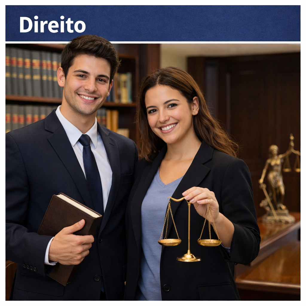 Forme-se em Direito com uma formação completa, sólida e voltada à prática. Desenvolva habilidades essenciais para defender direitos, atuar com ética e se destacar no mercado jurídico desde os primeiros períodos.